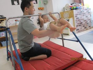 体操の先生の真似をしながらグーパーをしてみたり♪